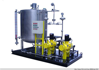 KBY型-自動加藥裝置是粉狀高(gāo)分子凝絮劑的全自動連續配置及(jí)投加係統。幹粉絮劑從螺旋(xuán)推進器內進入預混(hún)器(qì)與清水(shuǐ)進行預混,被濕(shī)潤的物料進入(rù)配製槽進行稀釋,按要求濃度進行配製。配(pèi)製過程中,配製溶液濃度不變。配製溶液從配製槽經熟化槽(cáo)再今日儲存槽,當儲存槽液位處於高(gāo)位時,配製過程自動停止,當溶液(yè)下降到中液位時,重新自動啟動配料過程。配製(zhì)槽和(hé)熟化槽均設置多槳葉攪拌器,充分保證絮凝劑的吸濕盒(hé)熟化。另外,可用儲(chǔ)存槽下液(yè)位信號來控製投加過程的啟停。