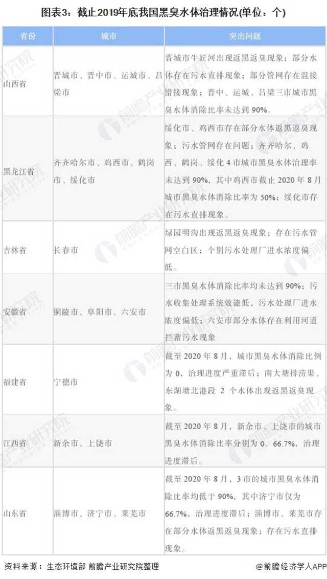 步入2020年,進入到黑臭水體治(zhì)理衝刺期。為了完成2020年碧水保衛戰的目標,我國還有多個城市需進一步推進。根據前述生態環境部印發(fā)的(de)《關於2020年(nián)1-9月水環境(jìng)目標任務(wù)完成情況(kuàng)的函》中指出,江西(xī)、山東(dōng)等15省(區)部分城市黑臭水體消(xiāo)除比例低於90%,治理進度(dù)滯後(hòu)。因此,未來一段時間內江西(xī)、山東、湖北等省市仍有較大投(tóu)資機會。城市(shì)黑(hēi)臭水體治理領域的投資機會依(yī)然存在。