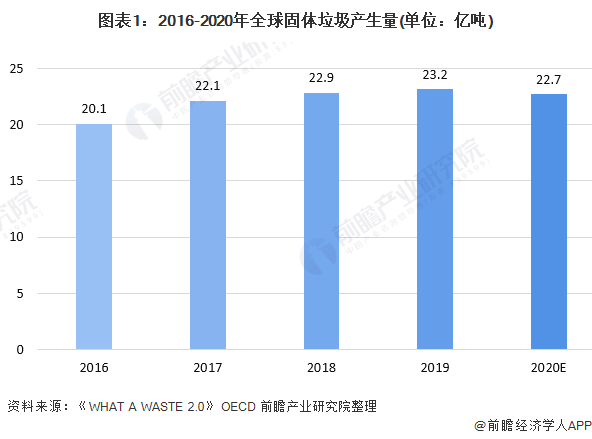 根據IMF公布的預測數據顯示,2020年全球GDP增速為-4.4%,預計2020年全球GDP大致為(wéi)83.8萬億美元,前瞻據此預計2020年全球固體垃圾產生量為22.7億噸。