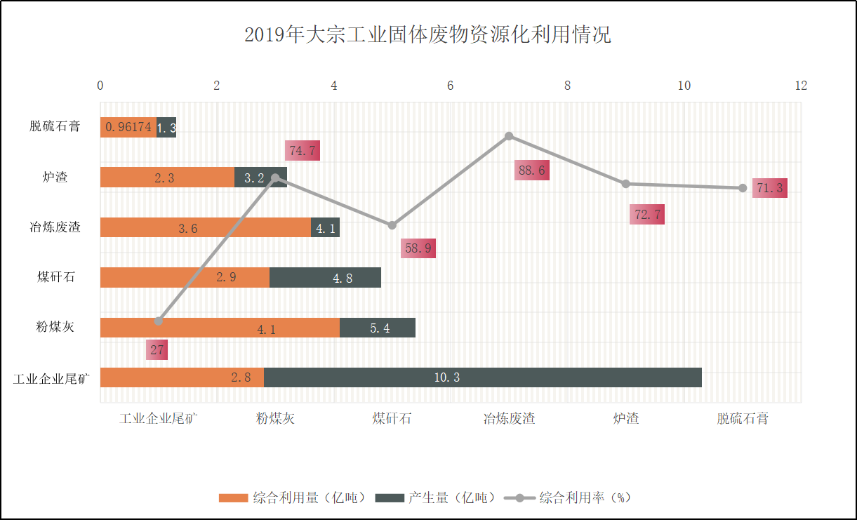 就大宗工業固體廢物資源化利用的情況來說(shuō),年報顯示: