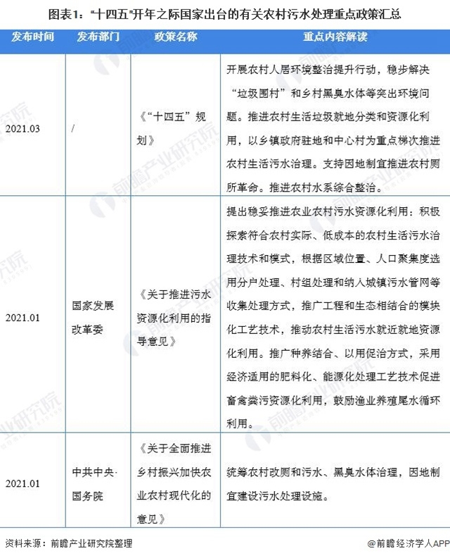 在“十四五”開年之際,*出台的《關於全麵推進(jìn)鄉村振興加快農業農村現代化的意見》、《關於推進汙水資源化利用的指導意見》、《“十四五”規劃》中均明(míng)確提出未來五年(nián)要加快推進農村(cūn)汙(wū)水處理。其中,在《“十四五”規劃》中提(tí)到,我(wǒ)國將開展農村人居環境整治提升行動,穩步解決“垃圾圍村”和(hé)鄉村黑臭水體等突(tū)出環境問(wèn)題。推進農村生活垃圾就地分類和資源化利用,以鄉鎮政府駐(zhù)地和中心村為重點梯次推進農村生活汙水(shuǐ)治理。支持因地(dì)製(zhì)宜推進農村廁所革命。推進(jìn)農(nóng)村水(shuǐ)係綜合整治。